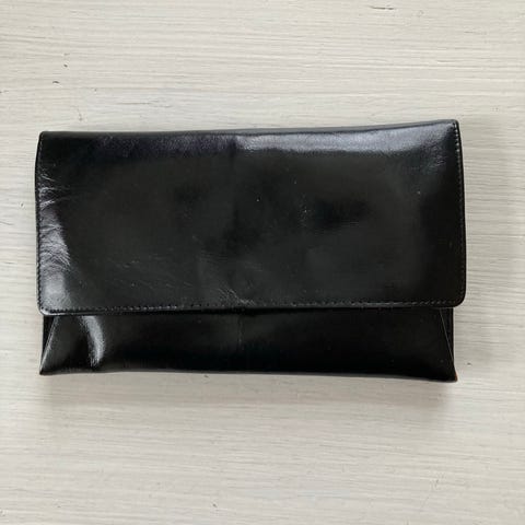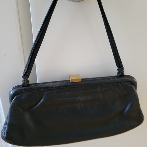 Vintage musta nahka kukkaro / iltalaukku