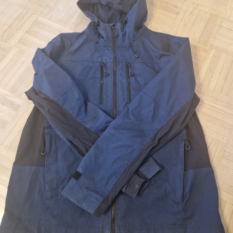 Myydään kevyt musta+petroolinsininen takki Neomondo kokoa M. Siniset osat ohutta, joustavaa kangasta ja mustissa kohdissa ohuet toppaukset lämmikkeenä.