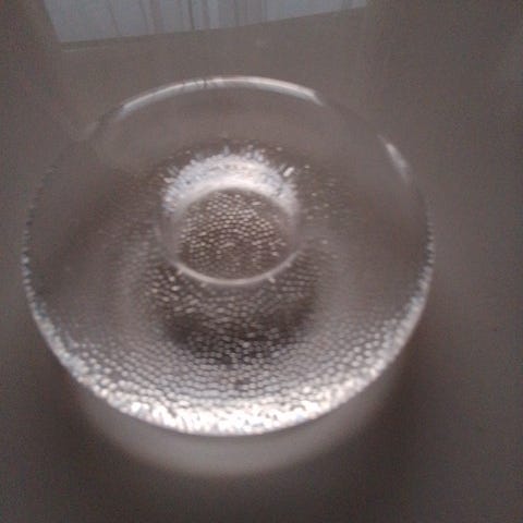 Kaunis lasinen kynttiläjalka.