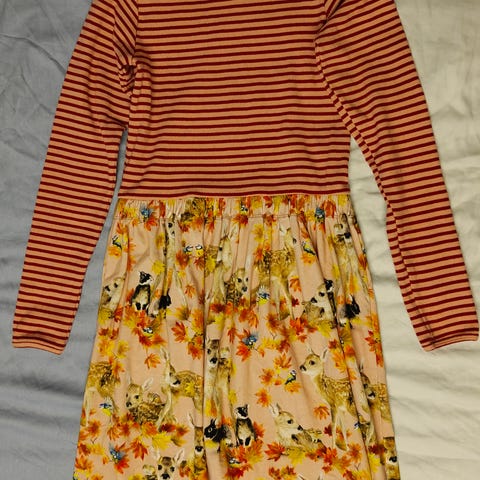 Kaunis harmaa Lumoavan lasten mekko koossa 146/152. Taskut.