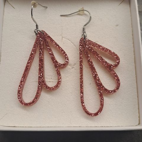 Myydään kotimaiset Onpakorea vanerista valmistetut korvakorut. Mukana alkuperäinen laatikko. Musta pisaran muotoinen osa glitteriä. Erittäin hyvässä kunnossa. Korvakoruissa tappikiinnitys.