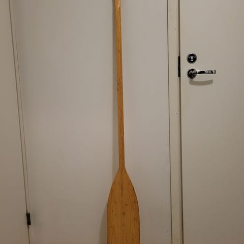 Erittäin laadukas ja kevyt, puinen mela. Kerran käytössä ollut mela. Teippikin paikallaan. Metrin pituinen.