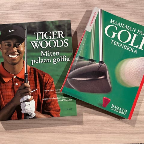 Tiger Woods Mitten pelan golfia ja Maailman parhaat golftekniikat kirjat