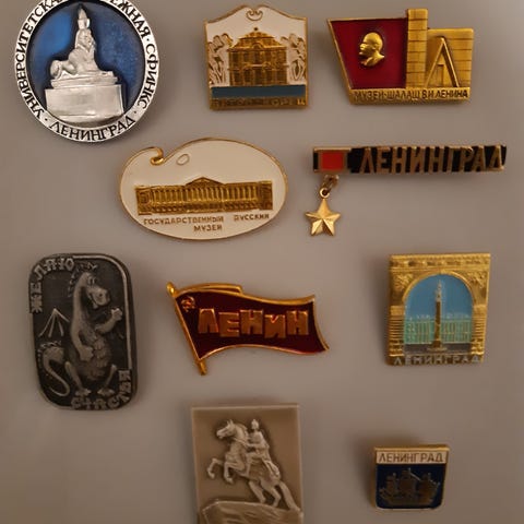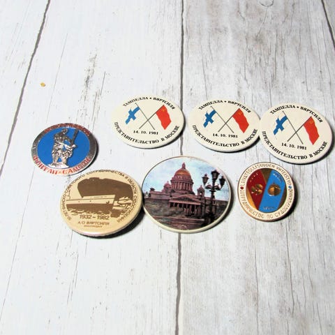 Neuvostoliitto-aiheisia pinssejä vuosien takaa.