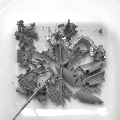 Warhammer Dark Elf warriors regiment boksi. 16 pitäisi olla mutta osia on vain 12 hahmoon.