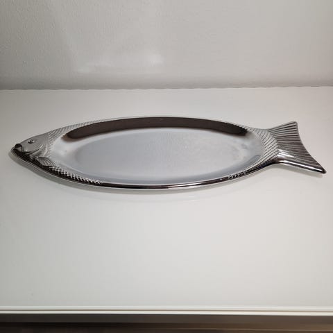 Kalan suomustin, metallia, varsi Visakoivua. Nahka lenkillä. Uusi ja käyttämätön. Tästä lahja kala miehelle. Katso muut ilmoitukseni.