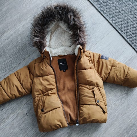 Myydään Name it merkin vaaleanpunainen toppatakki karvahupulla koko 92.