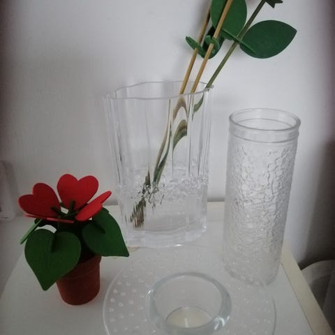 Mitat kork. 10cm, halk. 7cm.Voidaan käyttää myös pikku maljakkoina tai tarjoiluastioina. Suunnittelija Tiina Nordström. Hinta yht. kaikista.