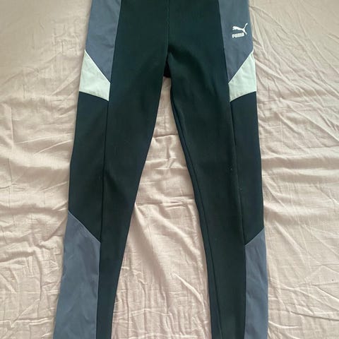 Puma leggingsit koko 140, mutta vastaa pienempää n. 128/134 cm. Vyötärön leveys venyttämättä n. 27 cm, haara-lahjemitta n. 57 cm. Hieman haalistuneet ja saumojen ommel irvistää (kuvat), muuten siistit. Ei pesuaineen tuoksua.