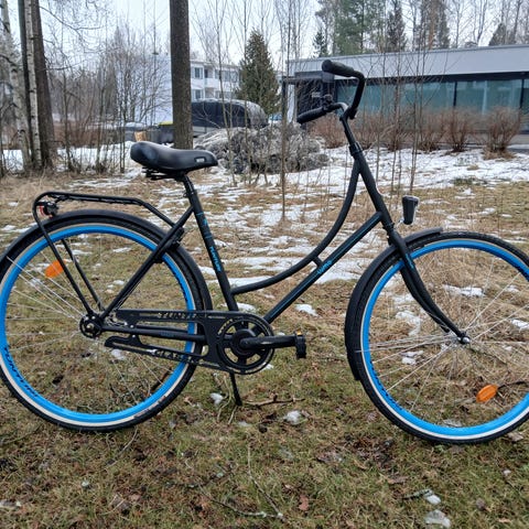 kolme vaihteinen ,ostettu uusi pehmeämpi satula ,takakori ei kuulu pyörään mutta sen saa halutessaan . pyörä on tosiaan aivan uusi ainoastaan pihassa kokeiltu, tyttärelle ostettu. Sarvet säädettävissä eri korkeudelle tai eri asentoon.