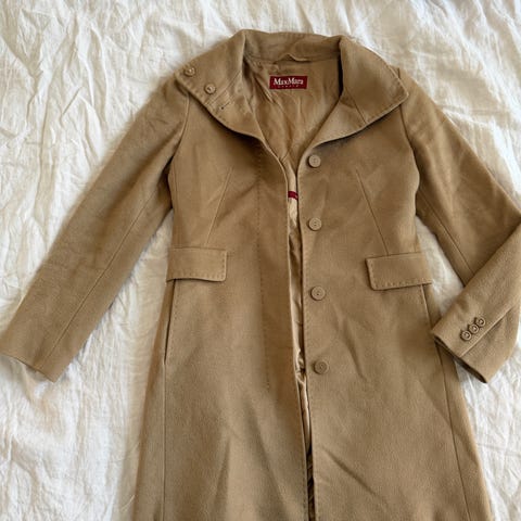 Ihana suoralinjainen, rento villakangastakki joustavaa neulosta ja ilman vuorta. Edessä isot taskut ja hopeanväriset nepparit kiinnitykseen (ei näy kun kiinni). Koko-ja materiaalilappu puuttuu, mutta sanoisin M ja villasekoite, mustavalkoinen ruutukuvio.