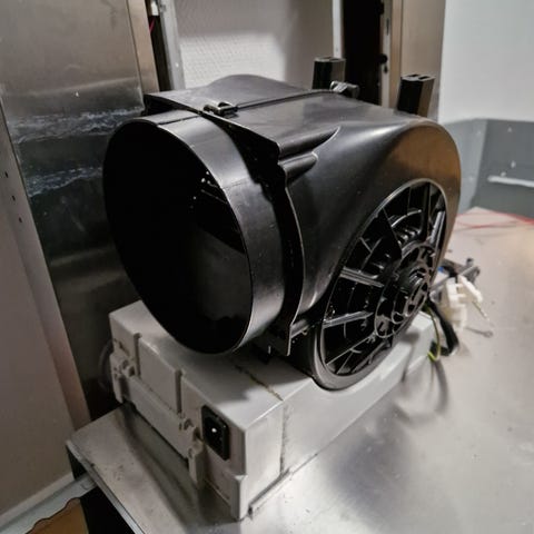 SAVO vedettävän liesituulettimen valkoinen etupaneli. Leveys on 50cm, koko on 4x2cm.