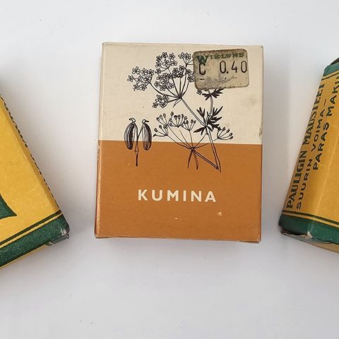 Vanhat pahviset sekä peltiset makeispakkaukset ja peltipurkit 1890-1970 väliltä.