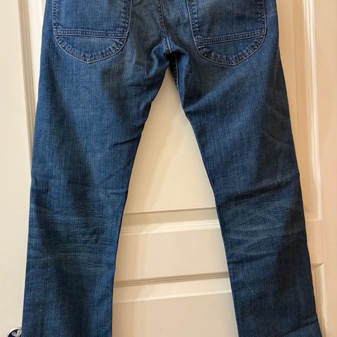 Creamin raikkaan siniset farkut, tuumakoko 30. Lahkeensuissa kivat pikku halkiot yksityiskohtana.