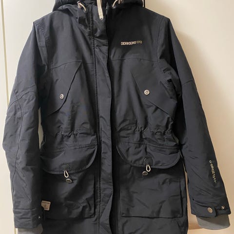 Myydään Didriksonsin musta talvitakki. Polvimittainen. Iso huppu. Vuorellinen talvitakki. Runsaasti taskuja. Taskuissa heijastinnauhat. Vyötäröllä säätönyöri. Koko 36.