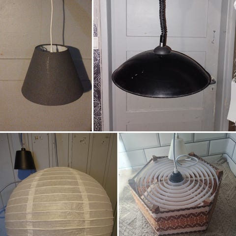 Myydään ylimääräisenä setti valaisimia yhdessä tai erikseen. 2kpl roikkuvia kattovalaisimia, 1kpl plafondi ja 2kpl seinävalaisimia. Kaikki pitäisi olla ehjiä joskin pölyisiä. E14 ja E27 kannoilla. Roikkuvissa ainakin mukana pistokkeet valaisin pistorasioihin.