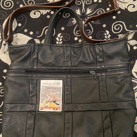 Vintage-tuotteelle ominaista patinaa – lähinnä tyylikkäällä tavalla. Takapuolen vetoketju ei oikein toimi, mutta taskua pystyy käyttämään ihan hyvin.