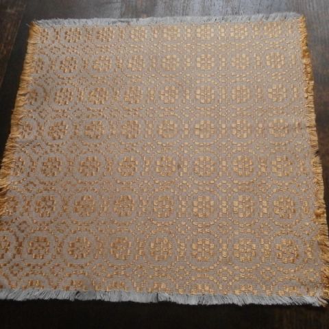 Pääsiäisliina 14. Vanha pellavadamastiliina, pihlajanlehtiä