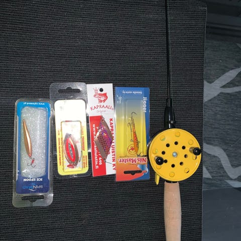 Haarukkavapa pilkintään. Rungon pituus 22 cm ja piikkien väli kärjestä kärkeen 19 cm.