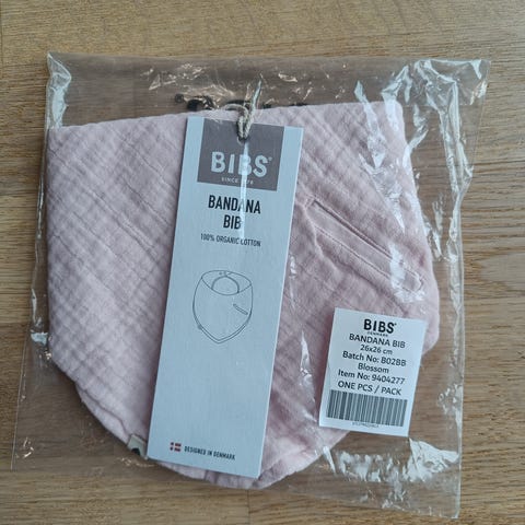 Myydään uusi ja vielä paketissa oleva Bibs-merkkinen vaaleanpunainen kuolalappu / huivi.
