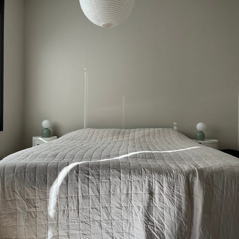 Kuvassa päiväpeitto on 120 cm leveän sängyn päällä.