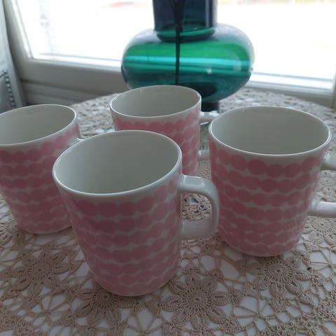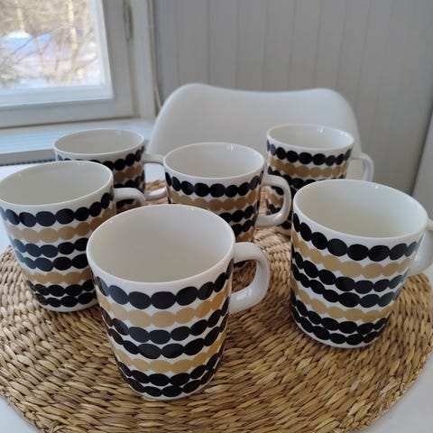 Hyvin vähällä käytöllä kaapissa olleet Marimekon Räsymatto-mukit 6kpl.