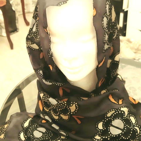 Käyttämätön uusi silkkihuivi, väri sini-violetti, tyylikäs graafinen kuvio, koko 80 x 80 cm, 100 luonnonsilkkiä, merkki Nina Star. Sopii hyvin vaikka lahjaksi.