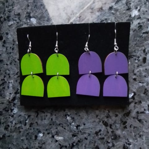Kauniit korvakorut vaikka lahjaksi. Kotimaista koivuvaneria, molemminpuolinen painatus, kevyet korvissa. Uudet.