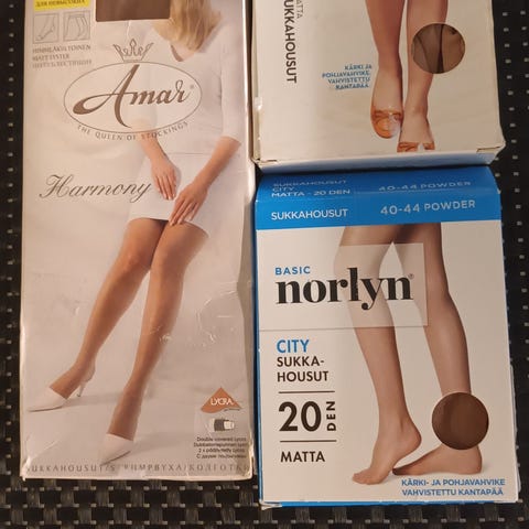 Kuusi paria 20 den. sukkahousuja.