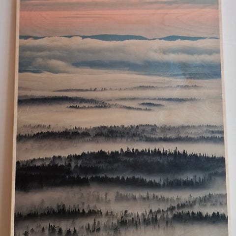 Taulun koko kehyksineen korkeus 61 cm ja leveys 53 cm