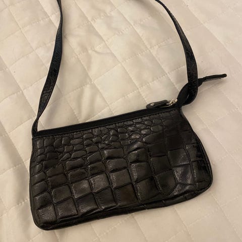 Irroitettava olkahihna. Magneettinappisuljenta, sisällä vetoketjullisia pikkutaskuja. Laukku on käyttämätön.
