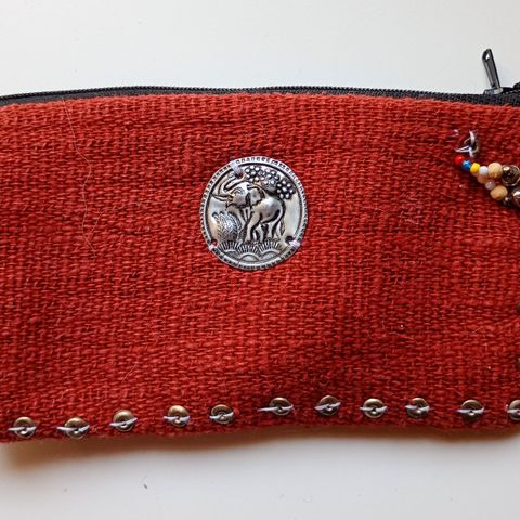 Punainen, norsu, elefantti, kukka, kukallinen, kirjailtu, kirjava, värikäs, laukku, kirjekuorilaukku, pussi, pussukka, penaali, meikkipussi, laukku, lompakko, elefantit, kirjailtu, kirjailu, käsityö, tarvike, tarvikepussi