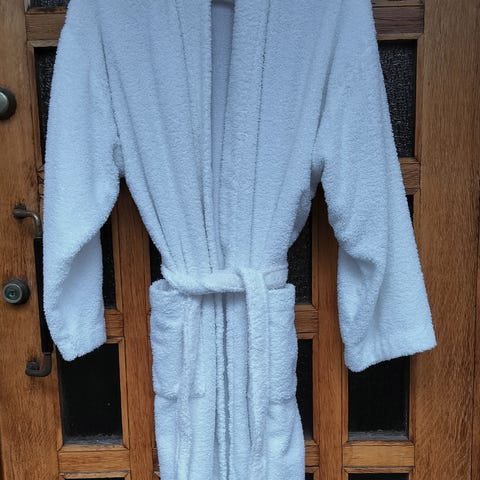 Kylpytakki, nopeasti kuivuvaa ohutta puuvillaa. Todella vähän käytetty.. Yhden koon takki, mutta käytännössä S.