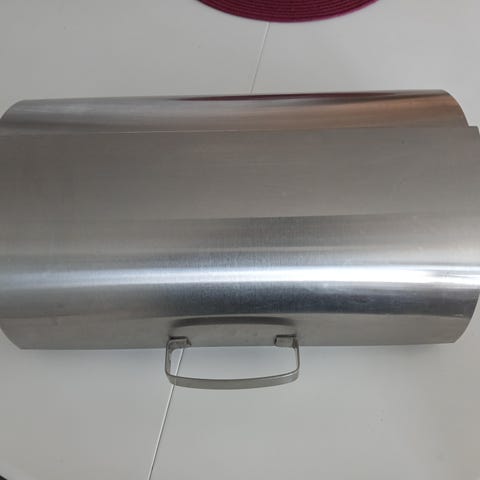 Meille liian isoksi todettu Ikean leipälaatikko. Jäi vähälle käytölle joten siisti. Ruostumatonta terästä.
