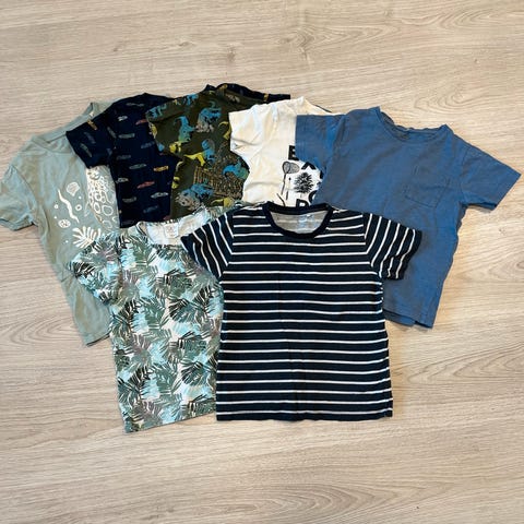 Poikien t- paita setti. Koko 110cm. 9 t-paitaa ja 1 kauluspaita. Siistejä ovat. Jossakin paidassa jotain tahraa on.