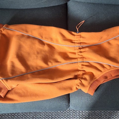 Kastellaan kylmässä vedessä ja puetaan päälle. Vetoketju kiinnitys, helppo pukea. Ollut käytössä Belgian paimenkoira uroksella.