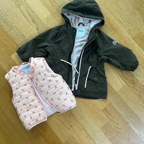 Benettonin kevättakki/ syksytakki ohuella vanuvuorella pienelle tytölle. Koko 74. Takki on ollut päällä pari kertaa kauppareissulla, enkä huomaa mitään käytön merkkejä. Väri kaunis vähän pinkkiin taittava vaaleanpunainen. Hajuton ja savuton talous.