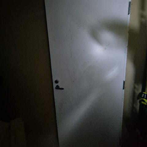 Siisti kuntoinen vasenkätinen palo-ovi.