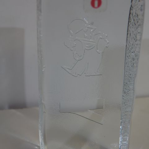Iittala, lasinen paperipaino. Aiheena vasemmassa laidassa oleva poro ja täysikuu sekä revontulet. Korkeus 10 cm, leveys 6 cm. Hinta 9euroa. Voin lähettää. Mmm.