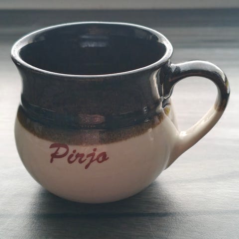 Kermansaven muki Aki-nimellä. Toinen jo myyty.