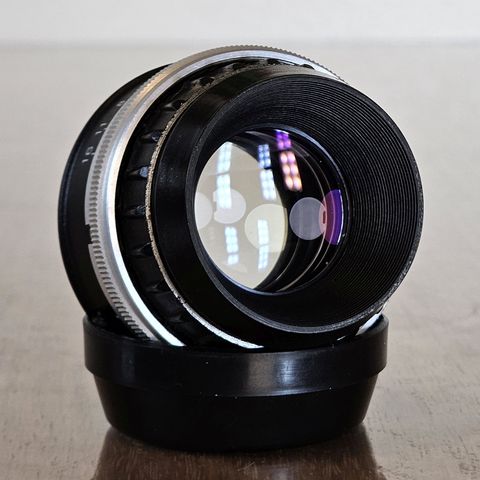 Myydään tsekkoslovakialaisen Meoptan Anaret 105mm f4.5 suurennusobjektiivi, siihen kuuluva linssilauta sekä alkuperäiset tulpat. Siinä on M39 -kierre. Objektiivi sopii 6x7 , 6x9 ja 6,5x9 cm negatiivien suurentamiseen. Aukonsäätö toimii.