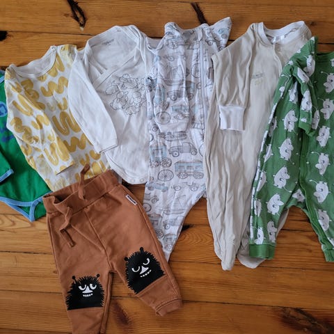Pieni suloinen vaatepaketti tytölle 68/74.