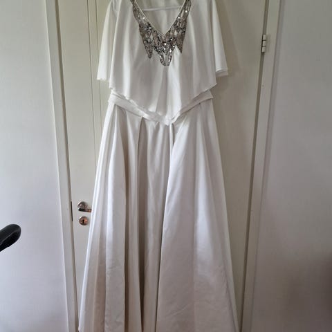 Myydään kaunis valkoinen hääpuku. Ostettu kerran käytettynä. Alun perin ostettu Tampereen morsiusgalleriasta (ovh. 950€). Selkä korsettimallinen eli kokoa saa muokattua. Puku on pesetetty pesulassa häiden jälkeen. Helmassa on pieni langan purkauma, joka on varmasti helppo korjata (huomioitu hinnassa). Kaupan päälle saa erikseen ostetun vannehameen.