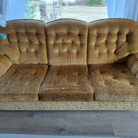 Kuvan mukainen sohva odottaa entisöijää, ajan puutteen vuoksi on jäänyt itseltäni vaiheeseen. Tee tarjous, jos kiinnostaa ottaa projektiksi.