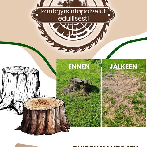 Kysy tarjous! Hintaan vaikuttaa mm. kantojen määrä ja halkaisija. Käymme mielellämme paikan päällä katsomassa kohteen ja tekemässä hinta-arvion työstä.