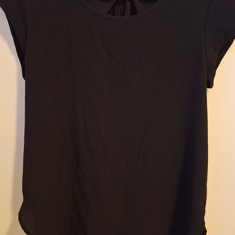 Kuvien mukainen Onlyn läpikuultava hihaton paita. Napeilla kiinnitettävä. Edessä pitkät nauhat, joilla saa näyttävyyttä. Takana ylhäällä kaunista "pitsikangasta". Koiratalous joten jokunen karva voi tulla mukana putsauksesta huolimatta. Mittoja löytyy kuvista