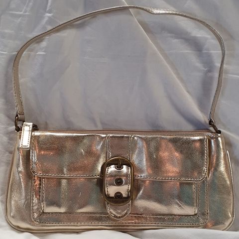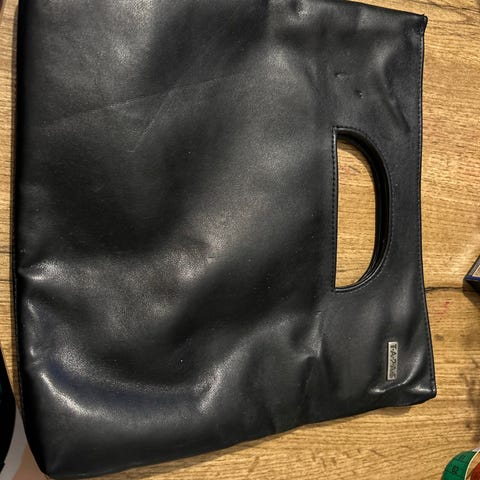 Pieni musta tekonahkainen käsilaukku soljella. Käyttämätön.