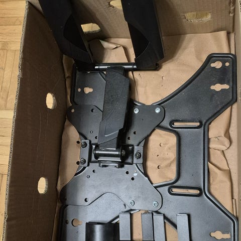 Isommille telkkareille tarkoitettu kääntyvä seinäteline. Meillä ollut kiinni curved 55" TV.