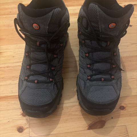 Uutena Scandinavian Outdoorista ostetut, kerran käytetyt (500m ulkokävelyä asfaltilla) ja itselleni liian pieniksi todetut, täysin uudenveroiset Merrel Wrapt Mid WP -retkeilykengät kokoa 45. Huom: Merrelillä on pienet koot – kenkien todellinen koko n. 43–44.