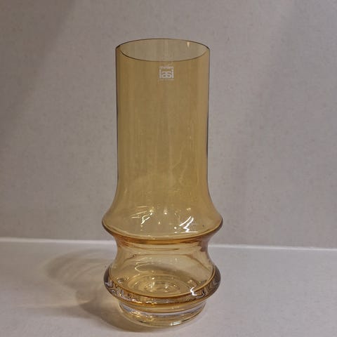 Riihimäen lasin vaaleankeltainen pieni Opaali-maljakko. Vintagea. Valmistettu 1950-60-luvulla. Kaunis vaaleankeltainen sävy ja pohjassa meripihkan sävyinen valo. Kuultaa kauniisti valoa, nimi Opaali kuvastaa maljakkoa hyvin. Ulkoreunassa ihan pieni riksu joka ei näy kun maljakko on pöydällä koska jää piiloon sen ”röyhelön” alle.
